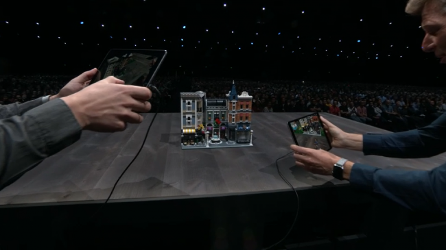 Apple also announced ARKit 2, which lets multiple users interact with augmented reality at the same time. Two people might use iPhones to play a game of chess on a coffee table, each with their own iPhone or iPad for controls. Lego, the toy block maker, showed an entire Lego playset come to life on a table with 3D Lego people running around on the tabletop. It supports up to four people at once. The new apps will be coming out later this year.